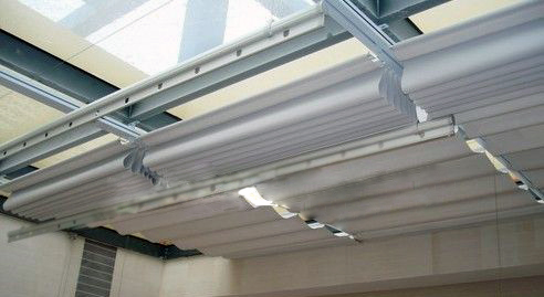 室內(nèi)玻璃采光頂遮陽簾,電動雙軌折疊式天棚簾